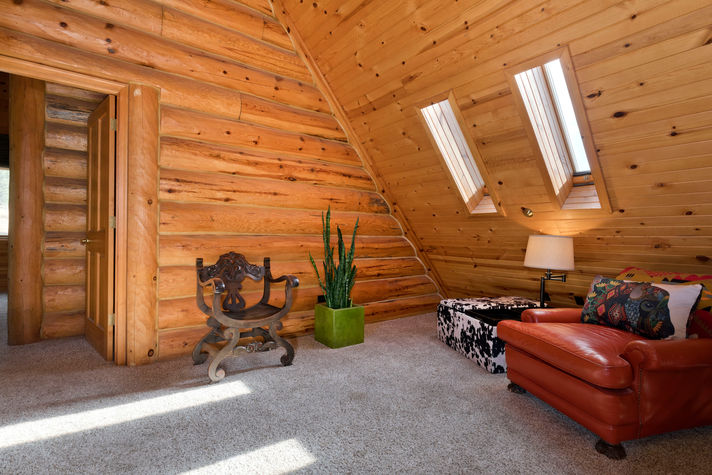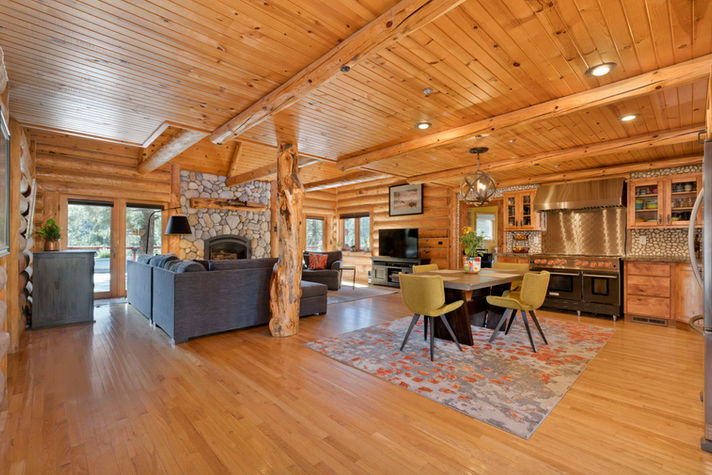 Designed and curated with 12” diameter kiln-dried, White Pine logs, split and hand-hewn, provides a warm and rustic ambiance with hand-picked updates that give this home chic modern flare.